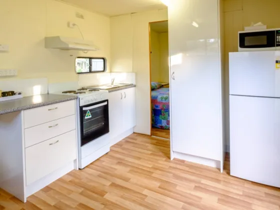 The Budget Bungalow is a great option for an affordable overnight stay or short visit. This compact cabin is set within the park grounds and features a comfortable queen bed, private ensuite, and convenient kitchen facilities — ideal for guests seeking value without sacrificing comfort.