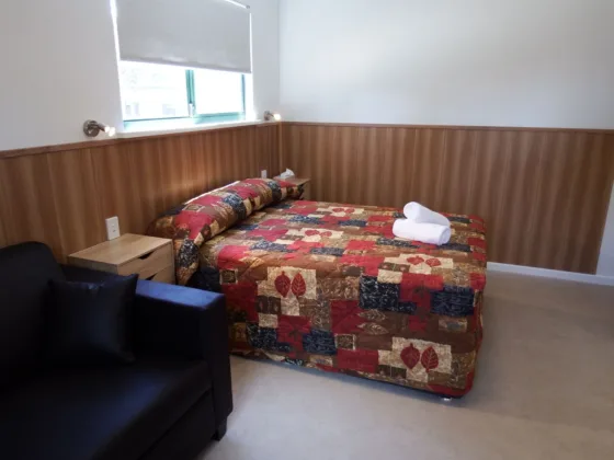This modern-style motel room offers a comfortable and convenient stay for couples, small families, or travelling colleagues. Sleeping up to four guests, it includes one double bed and a fold-out sofa bed for additional guests. The room features a private balcony and a full kitchen with stove, microwave, toaster and kettle, along with a TV and reverse cycle air conditioning for year-round comfort. A private ensuite and weekly servicing help make both short stays and extended visits easy and relaxing.