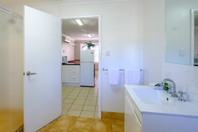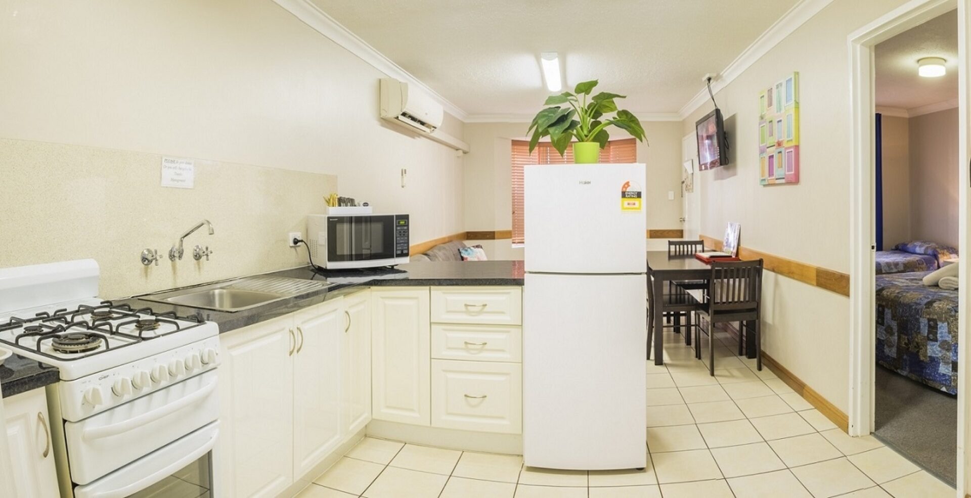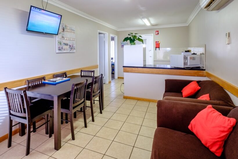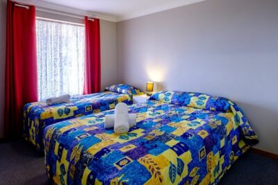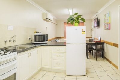 Ideal for families, groups or extended stays, this spacious two-bedroom motel unit features a full kitchen with stove, comfortable lounge and dining area, and private ensuite. Additional features include a TV, reverse cycle air conditioning and weekly servicing. Bed configurations may vary.