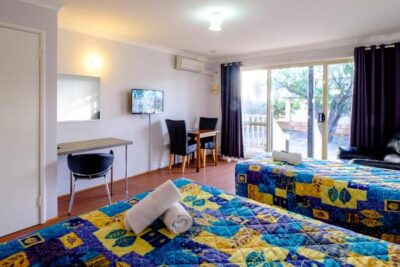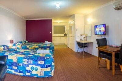 This modern-style motel unit is located on either the upper or lower level and features a private balcony. Sleeping up to five guests, the room includes one queen bed, one single bed and a double fold-out sofa bed. A kitchenette with cooktop, private ensuite, TV and reverse cycle air conditioning provide everything needed for a relaxed stay. Weekly servicing included.
